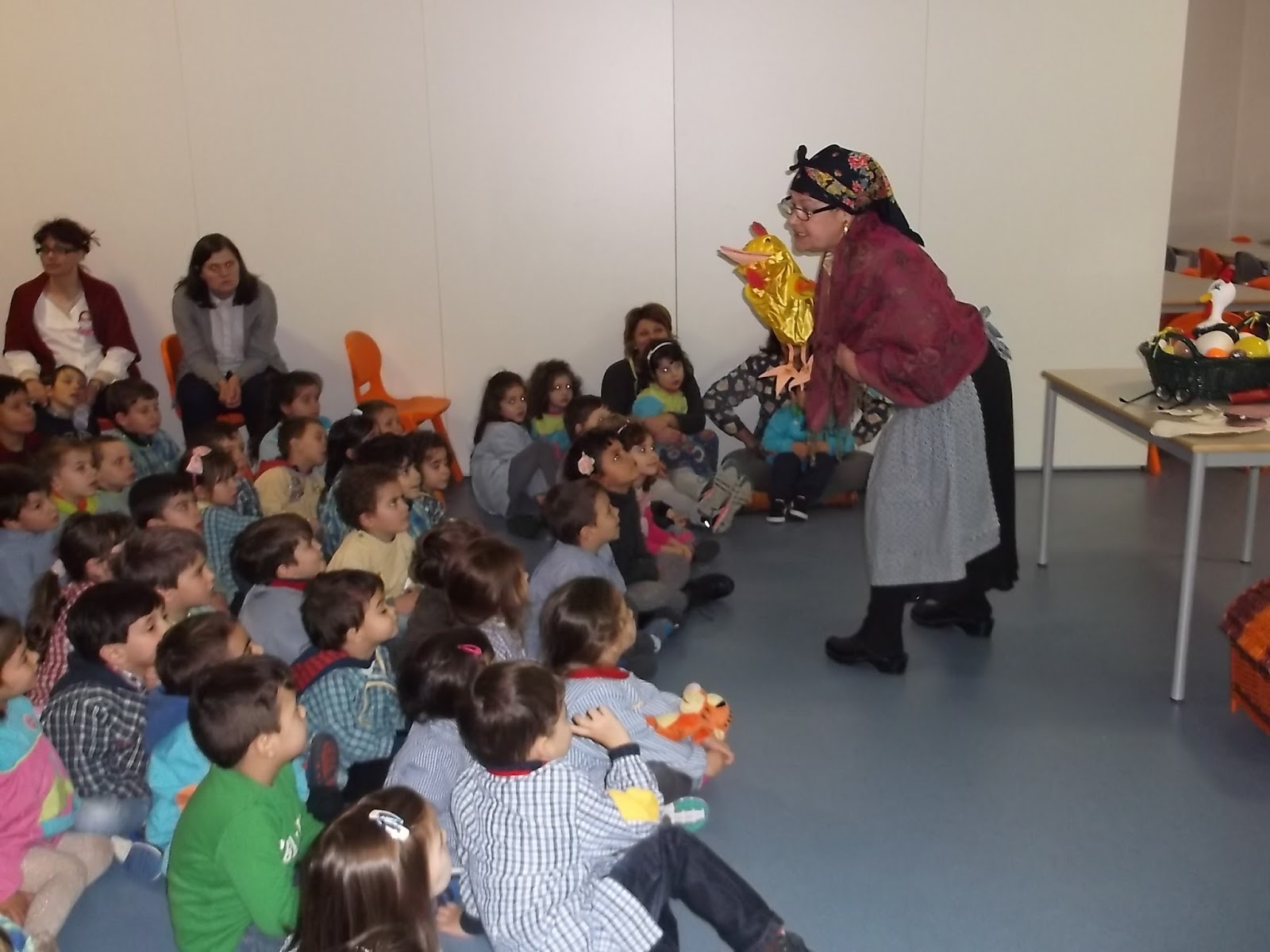 No dia 18, a avó Miquinhas voltou à escola e as crianças do Pré-escolar e os alunos do 1.º Ciclo assistiram, com muito entusiasmo, à dramatização da história "Os ovos misteriosos" de Luísa Ducla Soares.